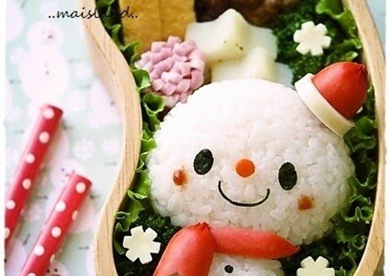 Many things affect the quality of taste from For Christmas! Little Snowman Charaben, starting from the type of ingredients, then the selection of fresh ingredients, the ability to cut dishes to how to make and serve them. Don't worry if you want to prepare For Christmas! Little Snowman Charaben delicious at home, because if you already know the trick then this dish can be used as an extraordinary special treat.
