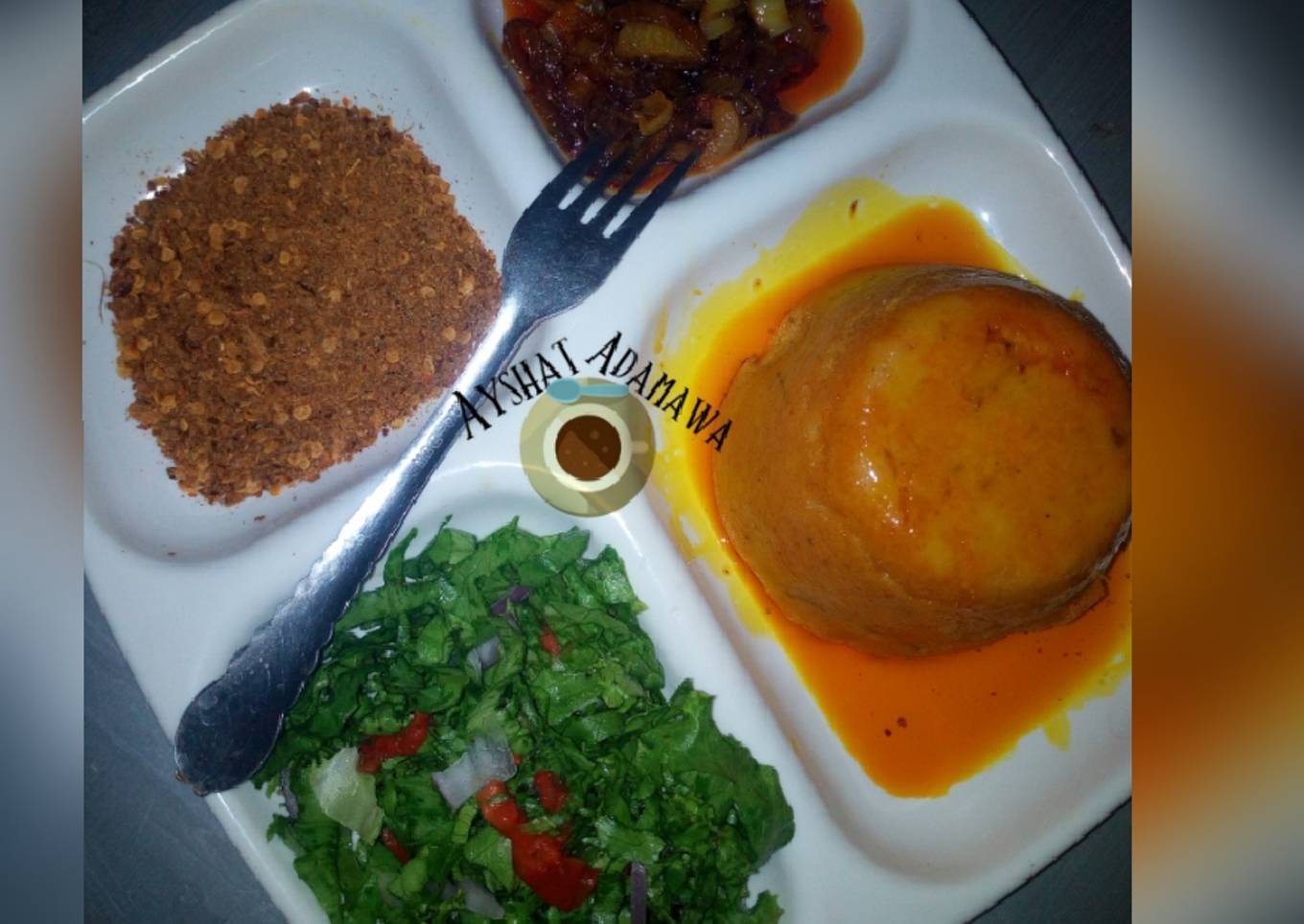 - Remove from fire and enjoy with palm oil sauce, lettuce, spicy pepper and chilled zobo.