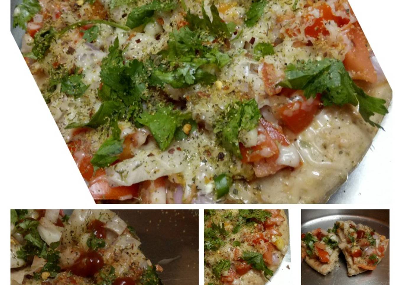 - Now spread the tomato ketchup and all add the toppings and spices according to taste..put it on tawa back and close a lid and cook till crisp and cheese melts on top Your healthy pizza is ready to devour